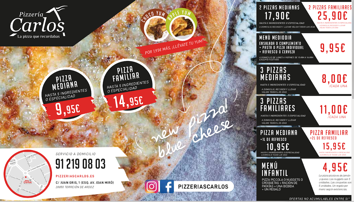 Welcome to Pizzería Carlos, located in the heart of Torrejón de Ardoz. This charming pizza restaurant excels in offering a menu that celebrates quality and flavor. With signature dishes like the pizza carlina and barbecue pizza, you can expect a delightful burst of fresh ingredients in every bite.